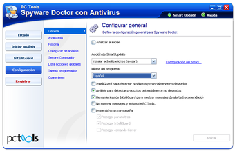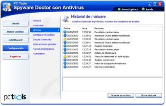 PC Tools Spyware Doctor con Antivirus contiene lo mejor de sus parientes cercanos, conservando una interfaz limpia a la par que informativa. La tecnología de protección IntelliGuard cuenta con diez escudos en tiempo real (como el de Comportamiento o el de Arranque) listos para detectar cualquier amenaza.